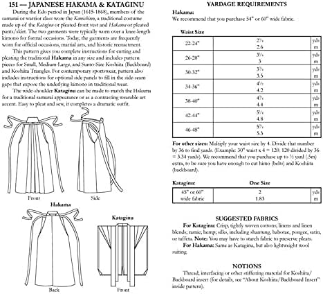 Folkwear 151 Japanese Hakama Kataginu Samurai Warrior Vest Pants Skirt Sewing Pattern Pattern Only Walmart Com